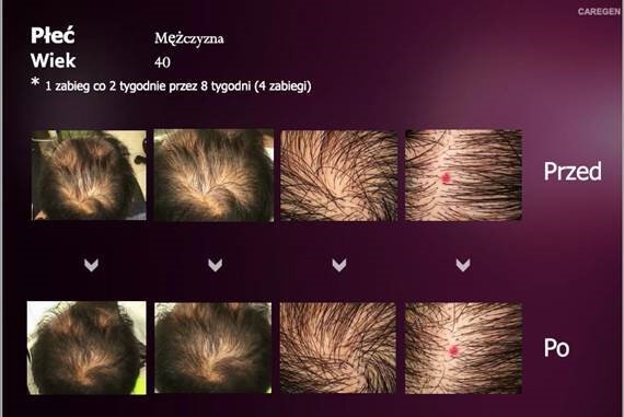 Już pierwszy zabieg zatrzymuje wypadanie włosów. Natomiast kolejne zabiegi pobudzają krążenie i rewitalizują mieszki włosowe przyspieszając odrost włosów.